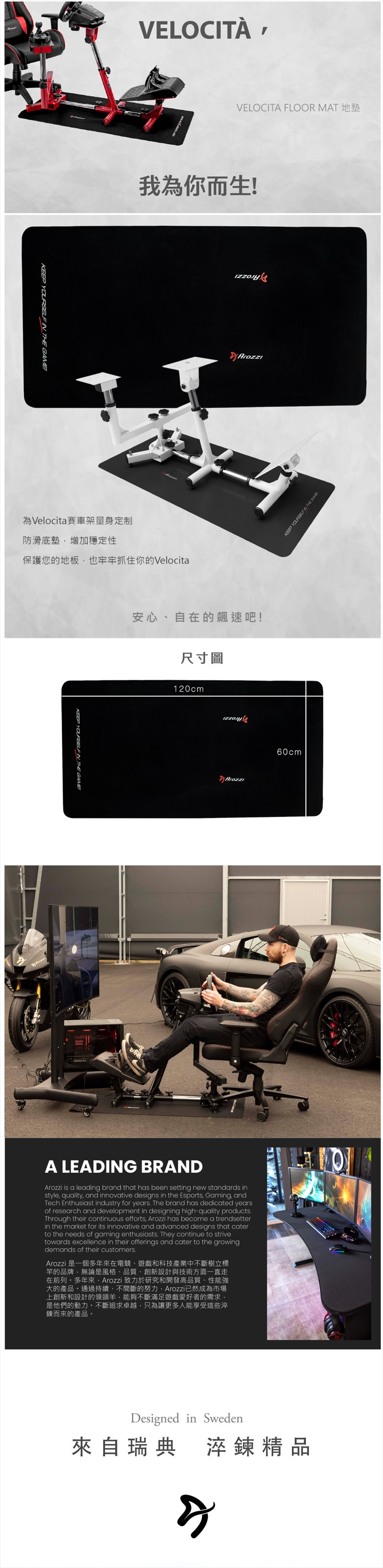 瑞典Arozzi Velocita 模擬器賽車架地墊