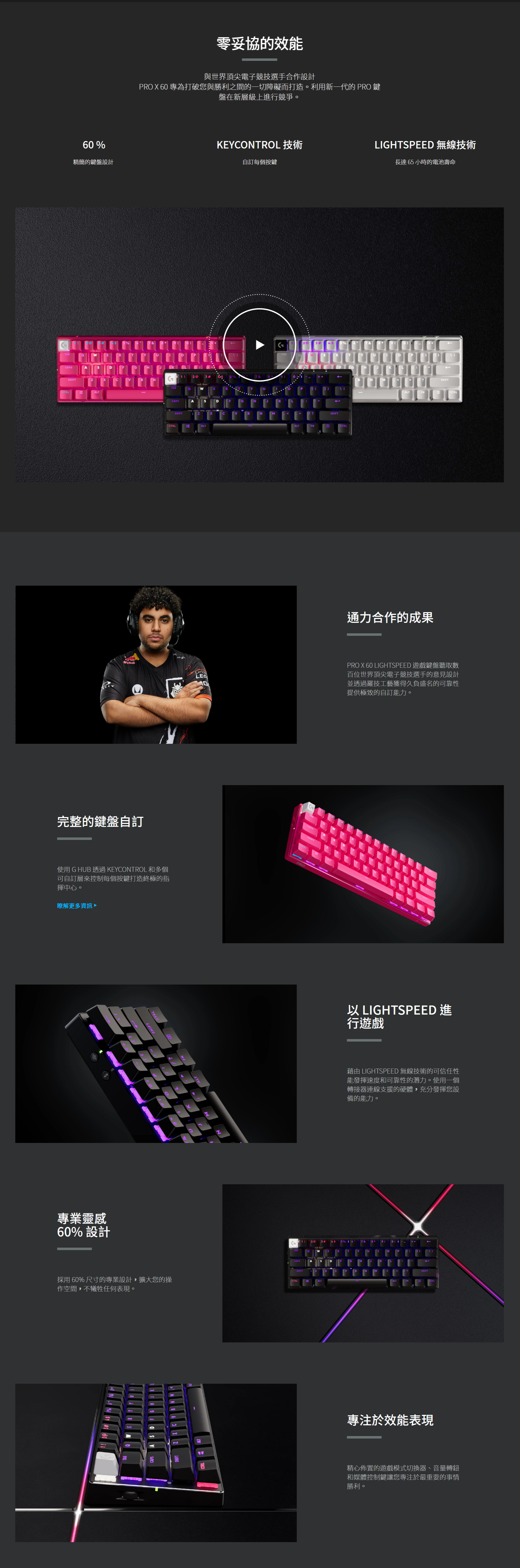 羅技G Pro X 60%無線專業機械式電競鍵盤 (白色/無線-藍牙/GX光學軸//LIGHTSPEED/RGB/中文/2年保固)