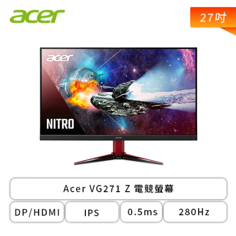 【27型】Acer VG271 Z 電競螢幕 (DP/HDMI/IPS/0.5ms/280Hz/FreeSync Premium/HDR400/內建喇叭/三年保固)