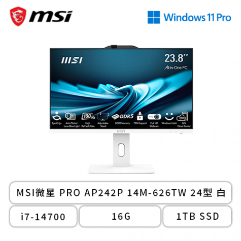 MSI PRO AP242P 14M-626TW 24型 白 (1920x1080/I7-14700/DDR5 16G/1T SSD/Win11 PRO/三年保固)