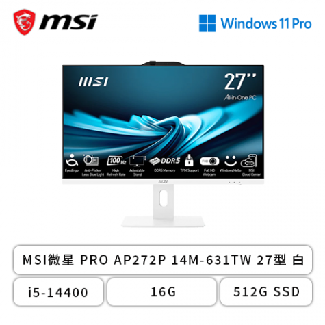 MSI PRO AP272P 14M-631TW 27型 白 (1920x1080/I5-14400/DDR5 16G/512G SSD/Win11 PRO/三年保固)