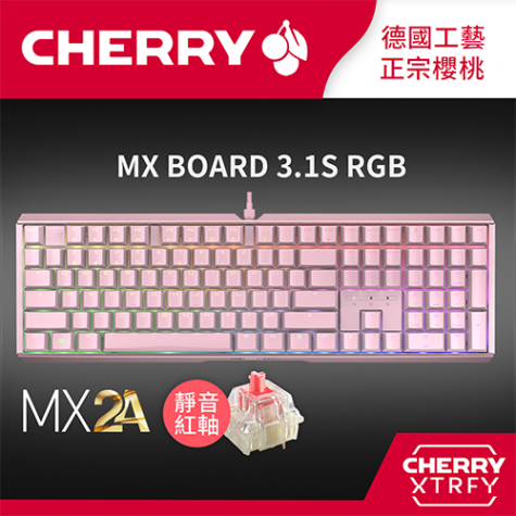 櫻桃 CHERRY MX Board 3.1S MX2A RGB機械式鍵盤(粉正刻/有線/靜音紅軸/鋁製底殼/Rgb/中文/2年保固)