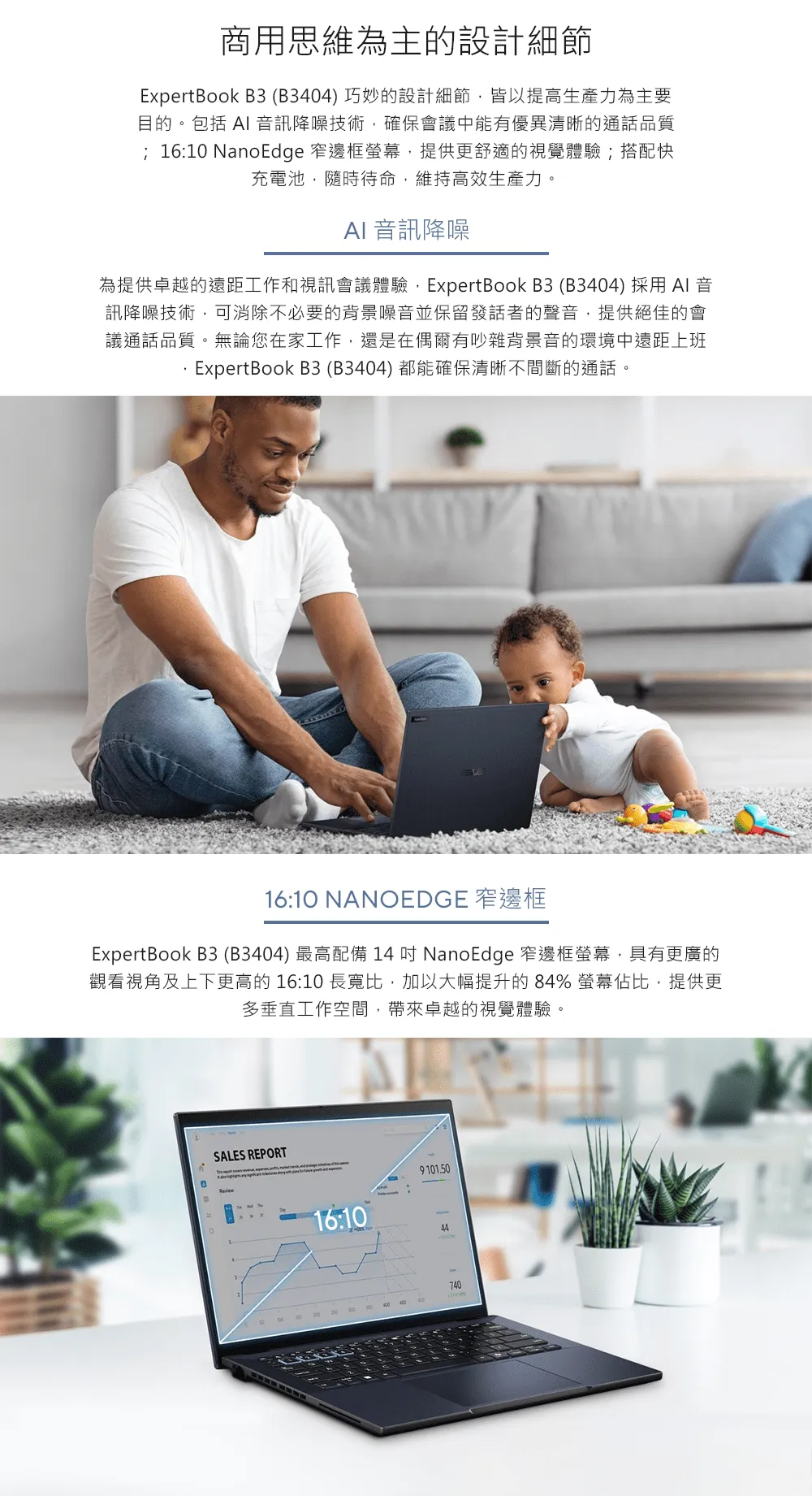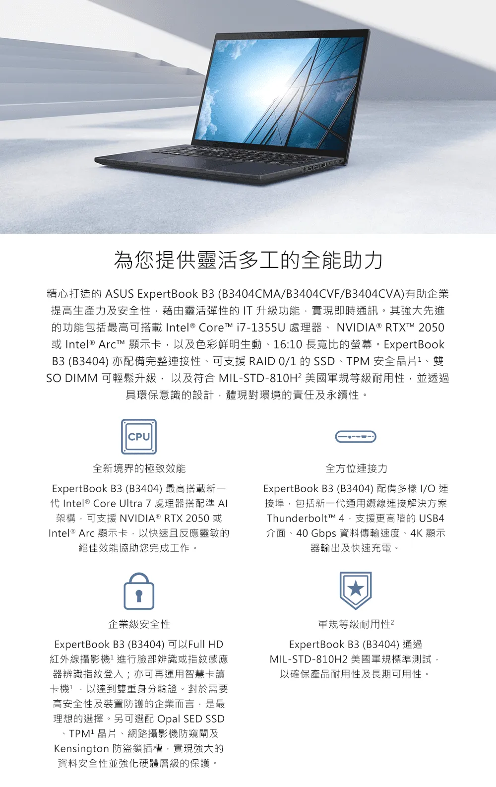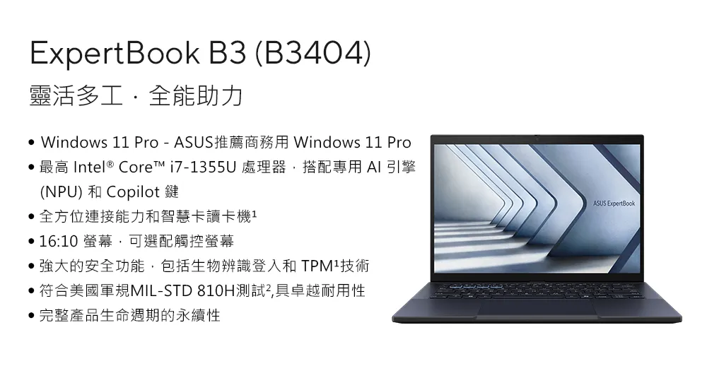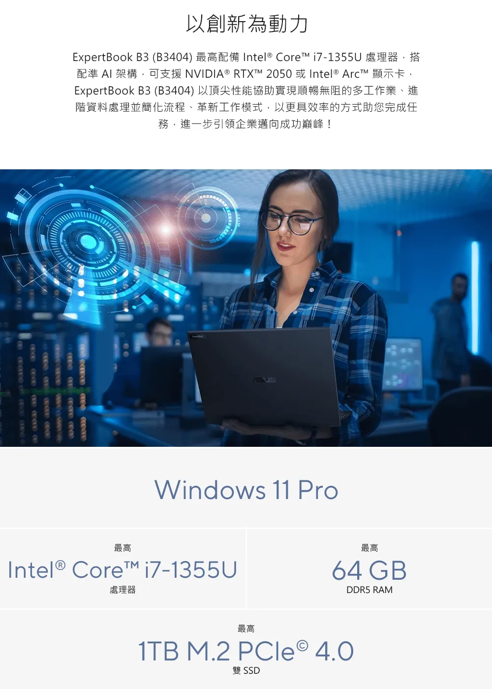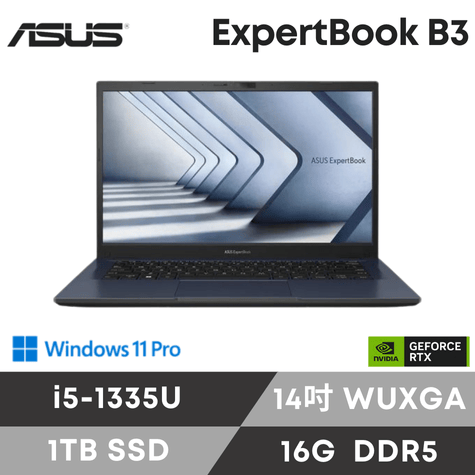 ASUS ExpertBook B3 華碩商用筆電/i5-1335U/16G D5/1TB SSD/RTX2050 4G/14吋 WUXGA/Win11 Pro/3年國際保+3年到府維修/B3404CVF-0141A1335U
