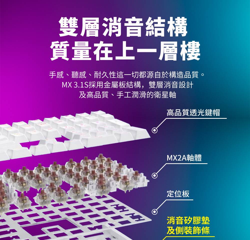 ★雙層降噪材質(矽膠墊 & EVA泡棉 ),搭配金屬定位版 ,昇華打字手感