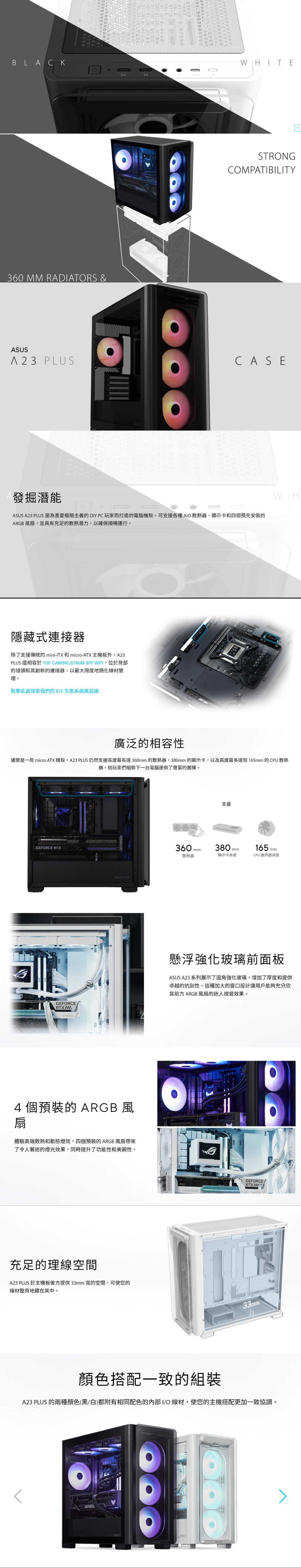 ▶廣泛的相容性:A23 PLUS 支援散熱器最長達 360mm ,顯示卡長 380mm ,以及最高達到 165mm 的 CPU 散熱器,並搭載前面板 Type C 連接埠。