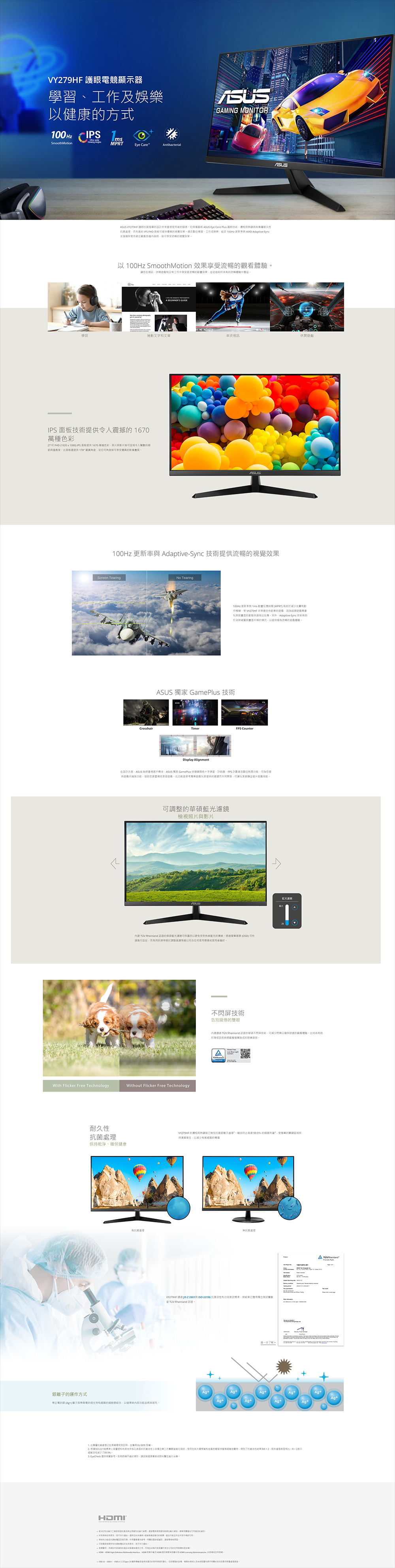 【27型】華碩 VY279HF 液晶螢幕 (HDMI/IPS/1ms/100Hz/Adaptive Sync/不閃屏/低藍光/無喇叭/三年保固)