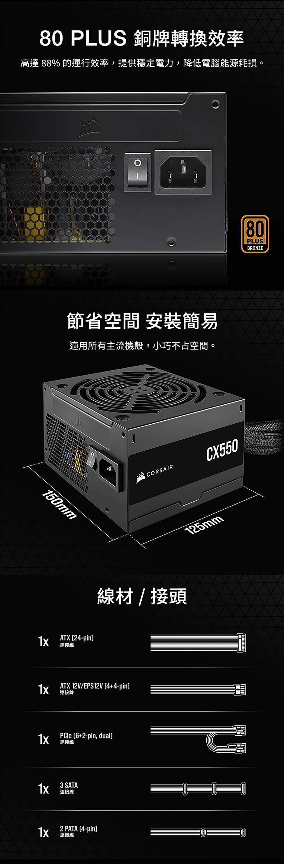 ▶高達 88% 的 80 PLUS Bronze 效率
