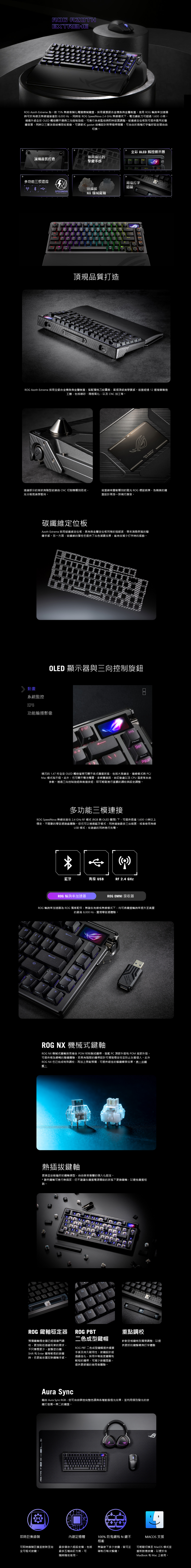 - 絕佳打字體驗:透過預潤 ROG NX 機械式鍵軸與三層消音結構,吸收振動和空腔音,以提供出色的觸鍵體驗。