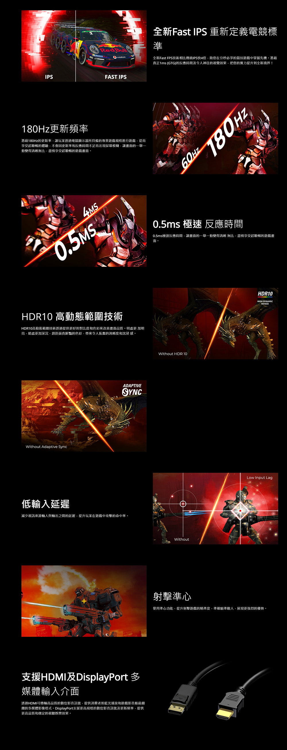反應時間 0.5ms (MPRT) / 1ms (GtG)