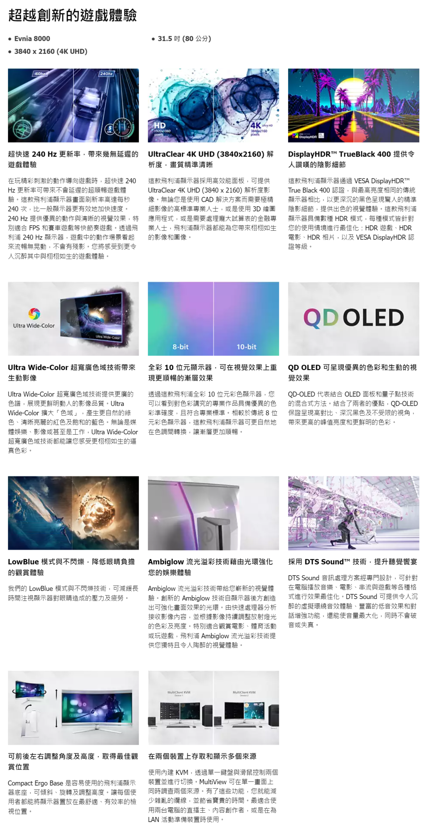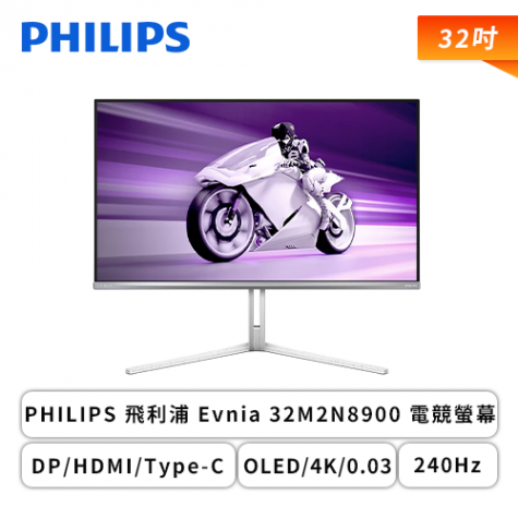 【32型】PHILIPS 飛利浦 Evnia 32M2N8900 QD-OLED 白色 電競螢幕 (DP/HDMI/Type-C(65W)/QD-OLED/4K/0.03ms/240Hz/G-SYNC/Adaptive Sync/HDR400/Delta E < 2/Ambiglow 流光溢彩技術/KVM/可升降/可旋轉/內建喇叭/三年保固)