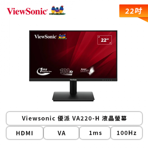 【22型】Viewsonic 優派 VA220-H 液晶螢幕 (HDMI/D-Sub/VA/1ms/100Hz/不閃屏/低藍光/無喇叭/三年保固)