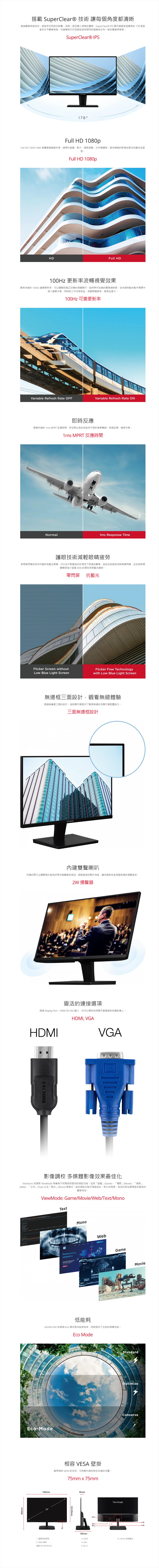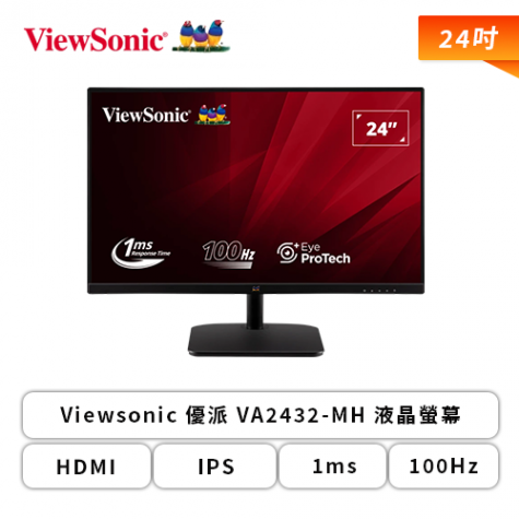 【24型】Viewsonic 優派 VA2432-MH 液晶螢幕 (HDMI/D-Sub/IPS/1ms/100Hz/不閃屏/低藍光/內建喇叭/三年保固)