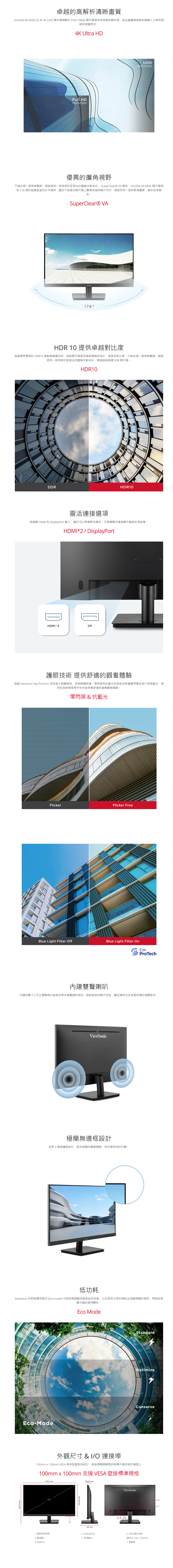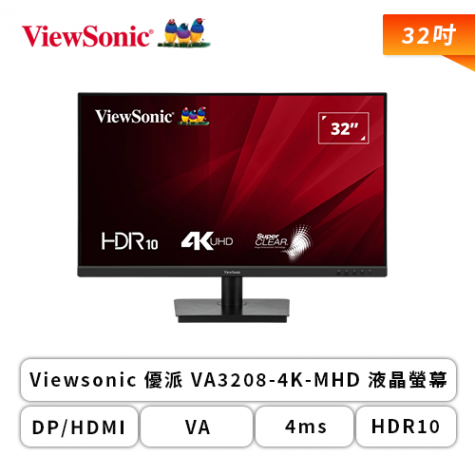 【32型】Viewsonic 優派 VA3208-4K-MHD 液晶螢幕 (DP/HDMI/VA/4K/4ms/HDR10/不閃屏/低藍光/內建喇叭/三年保固)