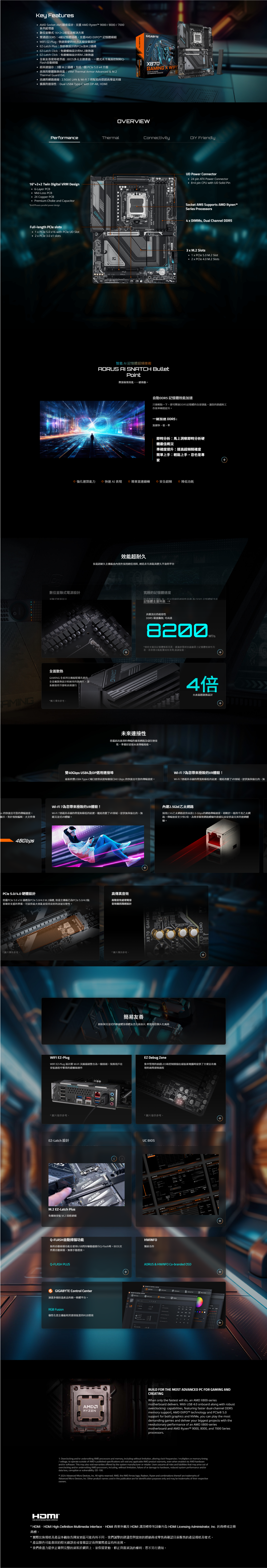 技嘉 X870 GAMING X WIFI7 (ATX/1H/Realtek 2.5Gb/Wi-Fi 7+BT 5.4/註冊五年保) 16+2+2相供電