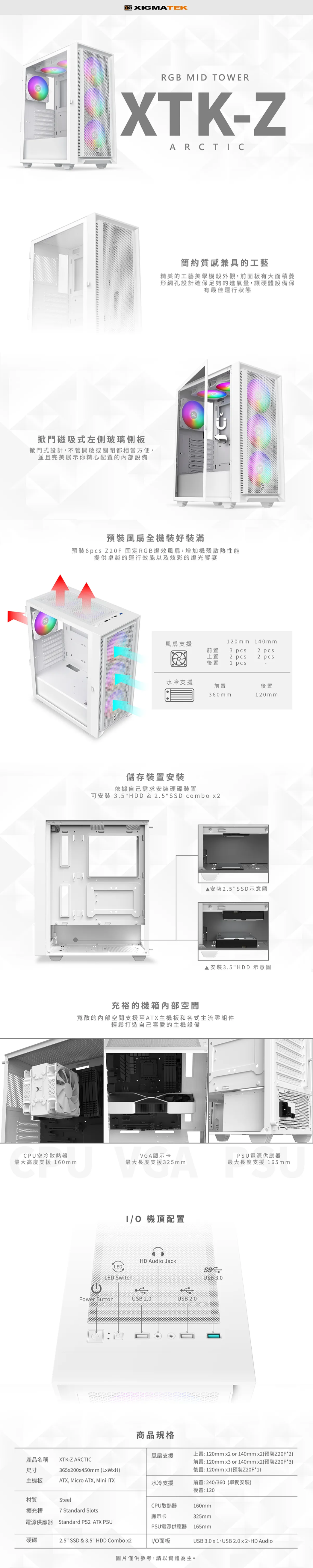 ▶前面板大面積網孔設計,確保足夠的進氣量排出廢熱