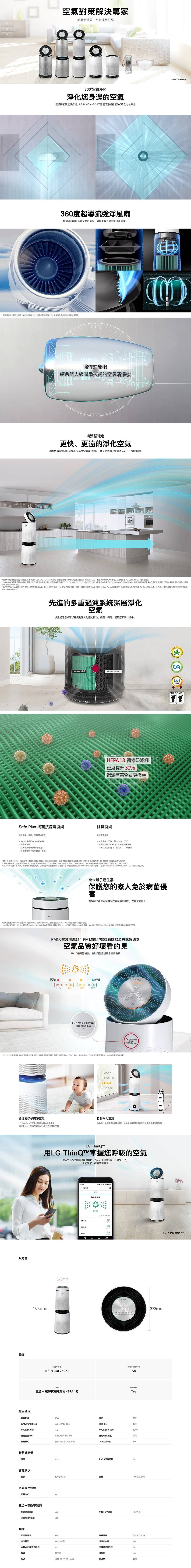 【LG樂金】PuriCare 360°空氣清淨機 - HEPA 13版/適用30坪 (雙層) AS101DWH0