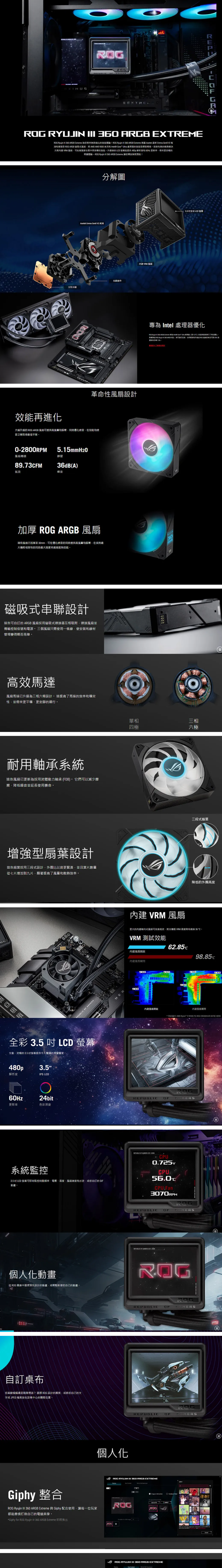 ▶3.5 吋 LCD 螢幕:解析度提升至 640x480,可顯示自訂 GIF 動畫或即時監控時脈頻率、電壓、溫度、風扇轉速或冷卻液流量等資訊。