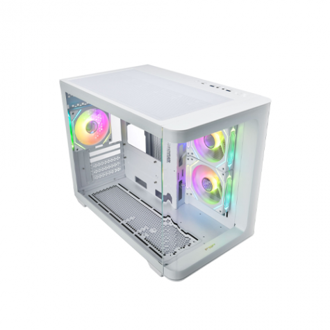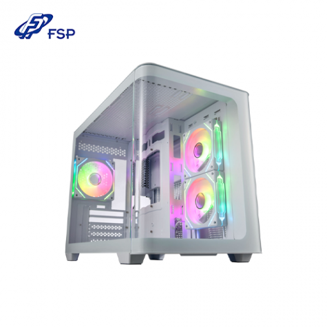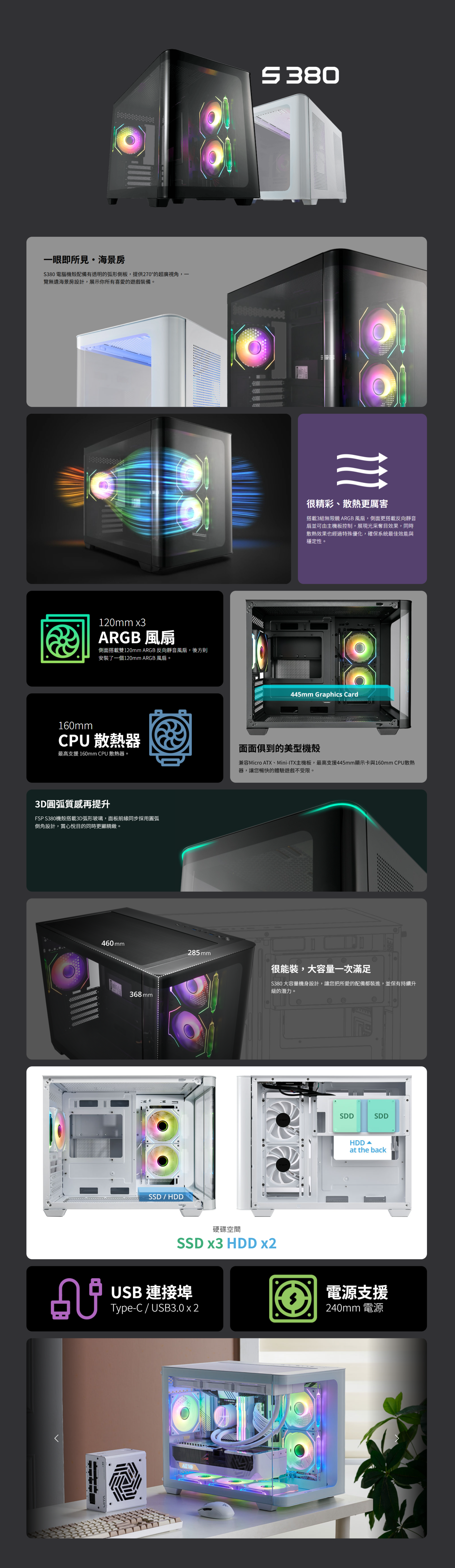 全漢 S380 白 全景玻璃機殼 (M-ATX/Type-C/內建風扇側2後1/ARGB無限鏡風扇/弧形玻璃/無A柱/顯卡445mm/塔散160mm)