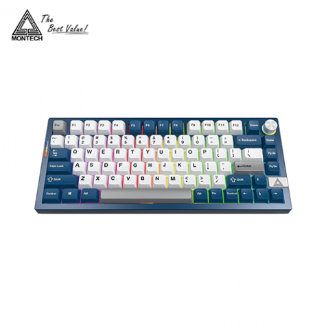 君主科技 Montech MKey PRO 普魯士藍 三模機械式鍵盤(藍色/有線-無線-藍牙/黃軸/PBT/熱插拔/降噪PORON墊片/75% 81鍵/中文/1年保固)