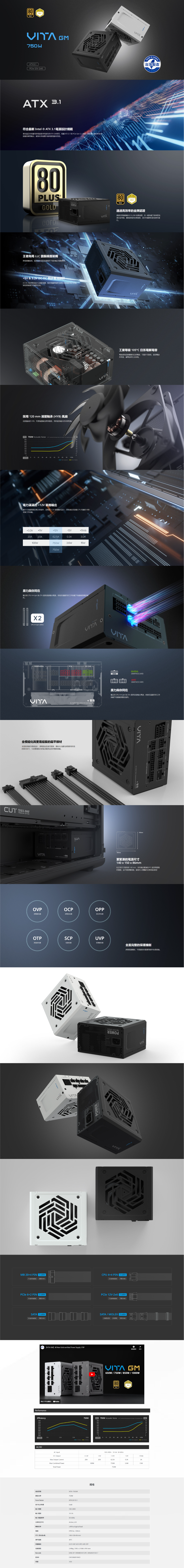 全漢 VITA GM 750W(MIT) (MIT台灣製造/80+金牌/ATX3.1/PCIe 5.1/全模組/主日系/十年保固)