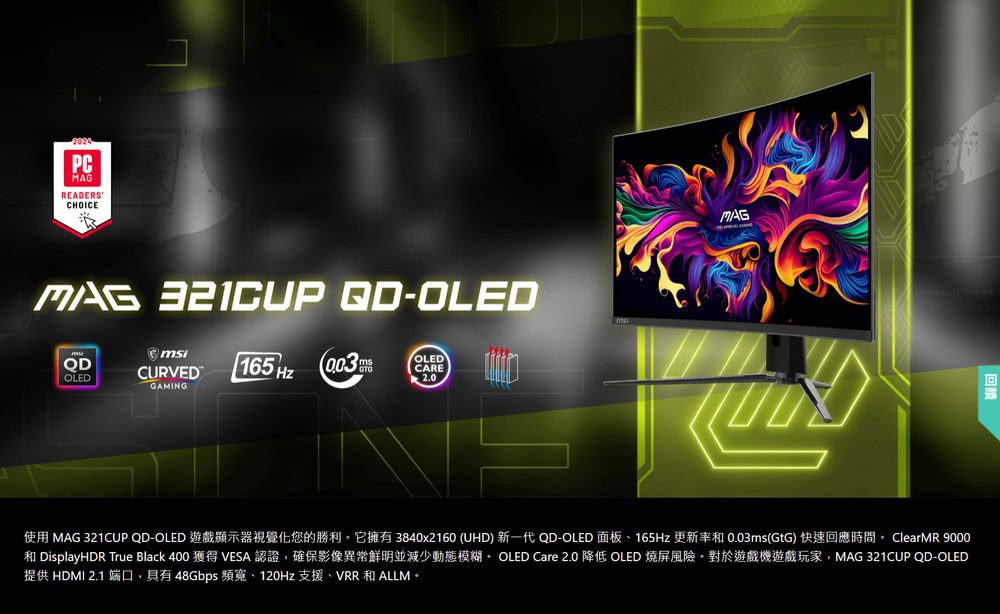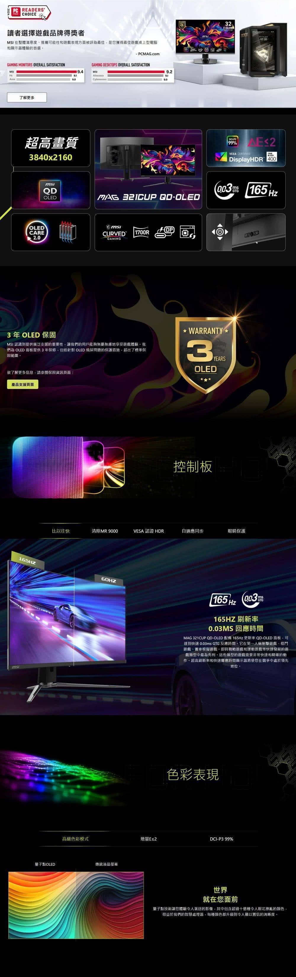 ▶第三代 QD-OLED 面板 – 具有令人驚嘆的影像品質和快速反應時間