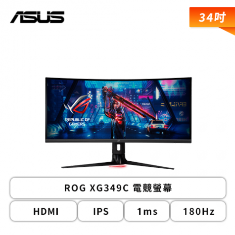 【34型】華碩 ROG Strix XG349C 電競螢幕 (DP/HDMI/Type-C/Fast IPS/曲面/2K/1ms/180Hz/G-SYNC/HDR400/135% sRGB/△E< 2/KVM/可升降/無喇叭/三年保固)