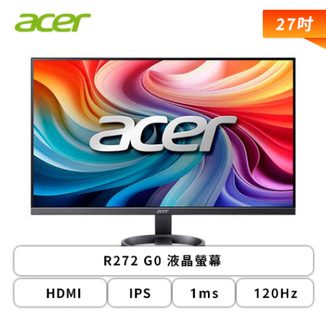 【27型】Acer R272 G0 液晶螢幕 (HDMI/VGA/IPS/1ms/120Hz/不閃屏/低藍光/內建喇叭/三年保固)