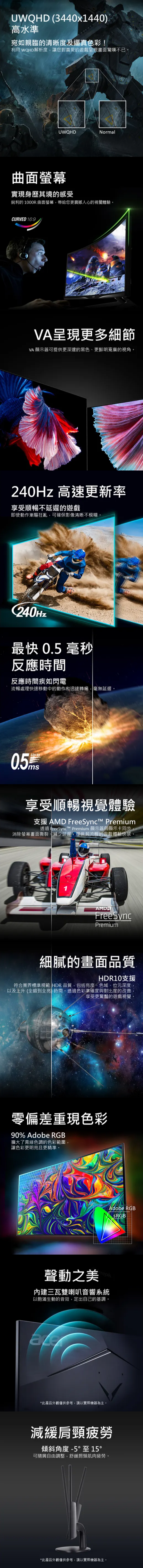 最高解析度/刷新率:HDMI:3440x1440@240Hz;DP:3440x1440@240Hz