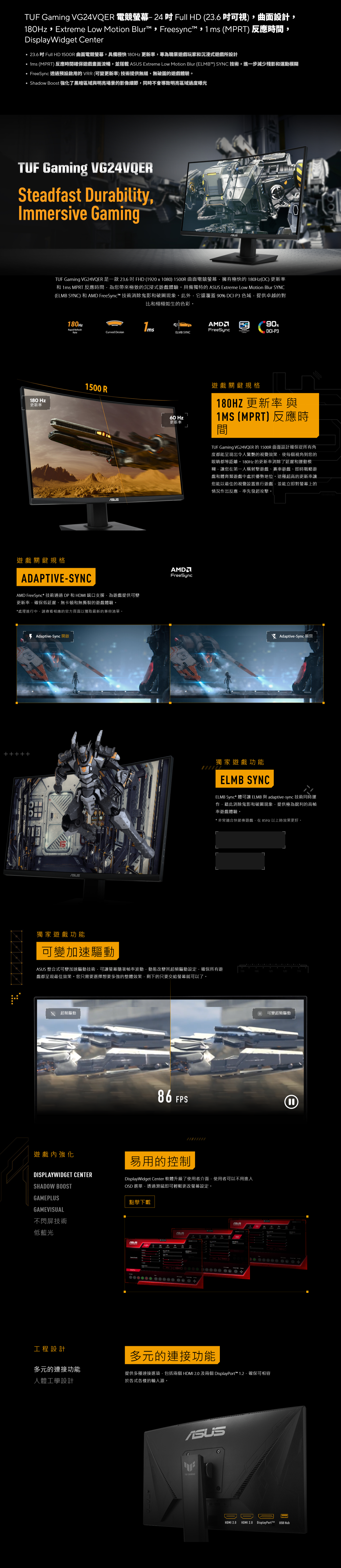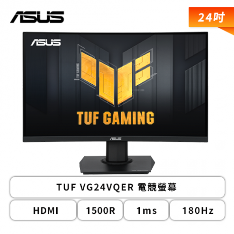 【24型】華碩 TUF VG24VQER 電競螢幕 (DP/HDMI/VA/曲面/1ms/180Hz/FreeSync/可變超頻驅動/內建喇叭/三年保固)