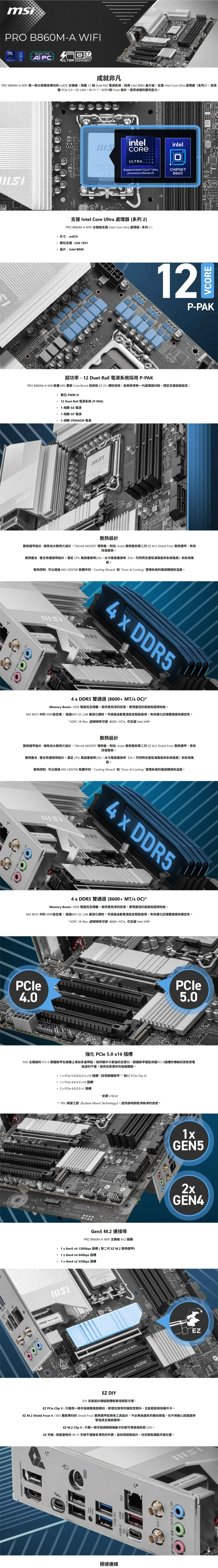 微星 PRO B860M-A WIFI (M-ATX/1H1P/Realtek 5Gb/Wi-Fi 7+BT 5.4/註冊四年保) 12+1+1+1相供電
