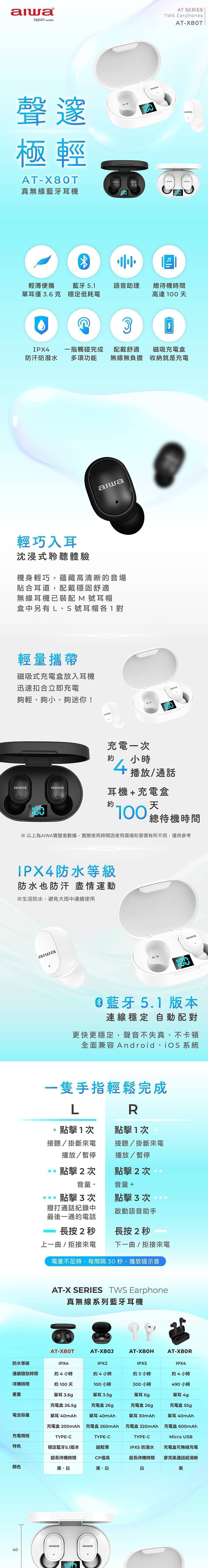 AIWA 愛華 真無線藍牙耳機 AT-X80T(白色)