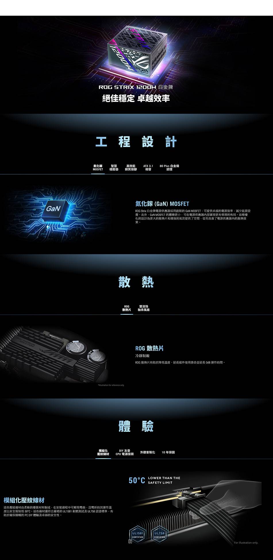 華碩 ROG STRIX 1200W (80+白金牌/氮化鎵MOSFET/智慧穩壓器/ATX3.1/PCIe 5.1/全模組/全日系/十年保固)