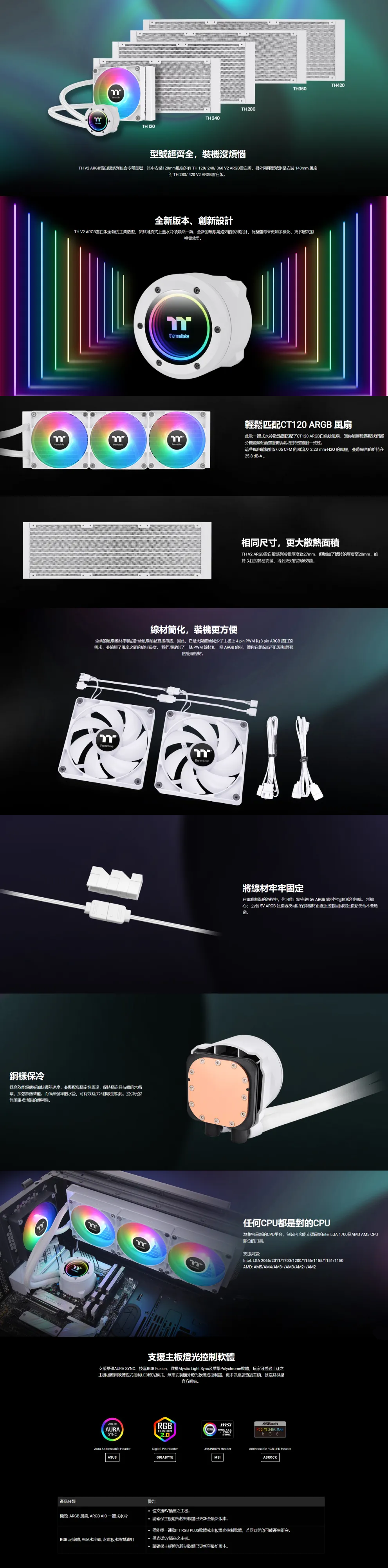 曜越 TH360 V2 ARGB 白 (360mm/ARGB旋轉冷頭+風扇/無限鏡燈效/12cm風扇*3/五年保固)