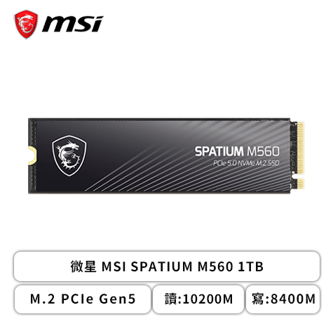 微星 MSI SPATIUM M560 1TB/M.2 PCIe Gen5/讀:10200M/寫:8400M/TLC/五年保