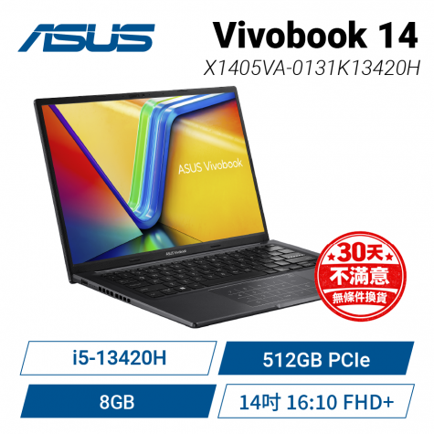 ASUS Vivobook 14 X1405VA-0131K13420H 搖滾黑 華碩13代輕薄高效戰鬥筆電/i5-13420H/8GB/512G PCIe/14吋 16:10 FHD+/W11/含原廠包包及滑鼠