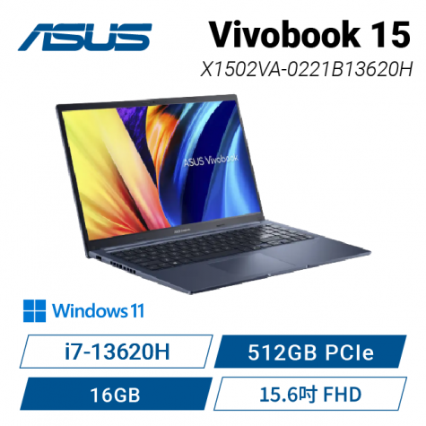 ASUS Vivobook 15 X1502VA-0221B13620H 午夜藍 華碩高效戰鬥筆電/i7-13620H/16GB/512GB PCIe/15.6吋 FHD/W11