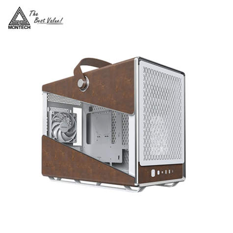 MONTECH Heritage PRO 白 玻璃透側機殼 (M-ATX/Type-C/內建風扇底3後1/皮革設計+提帶/顯卡400mm/塔散170mm)
