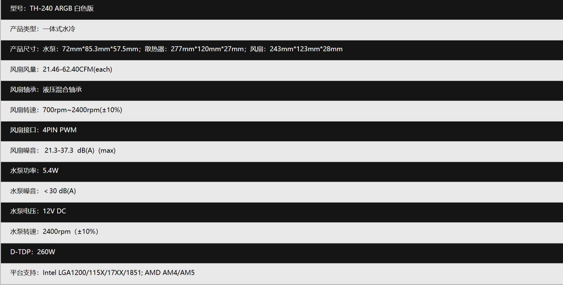JONSBO 喬思伯 TH-240 白 (240mm/液晶顯示水冷頭/一體式無限鏡風扇/12cm風扇*2/五年保固/漏液損壞賠償)
