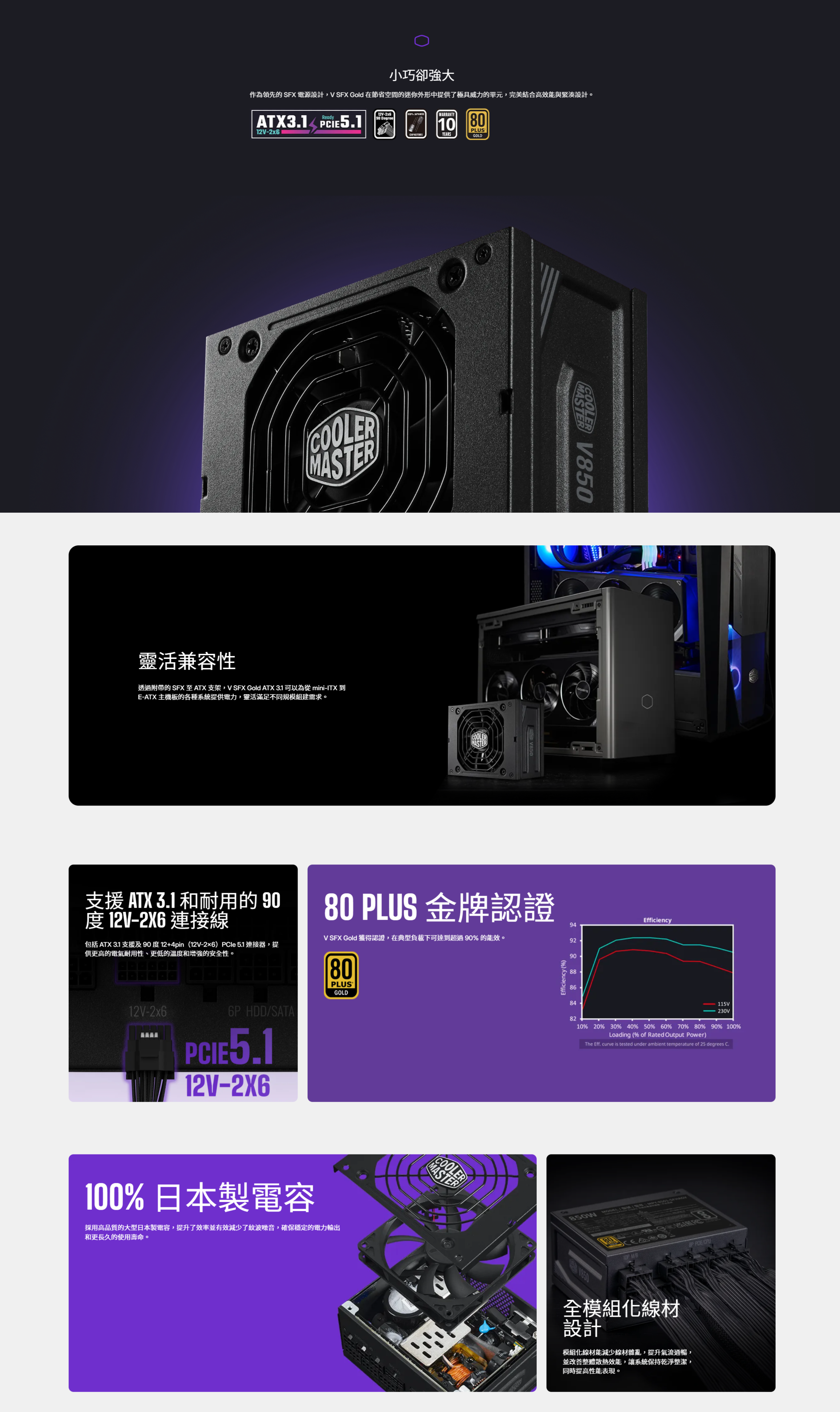 ▶靈活的相容性 ▶支援ATX 3.0 & 90° 12VHPWR 線材 ▶80 PLUS金牌認證 ▶全模組線材 ▶100%日本製電容 ▶10年保固 查看原廠資訊