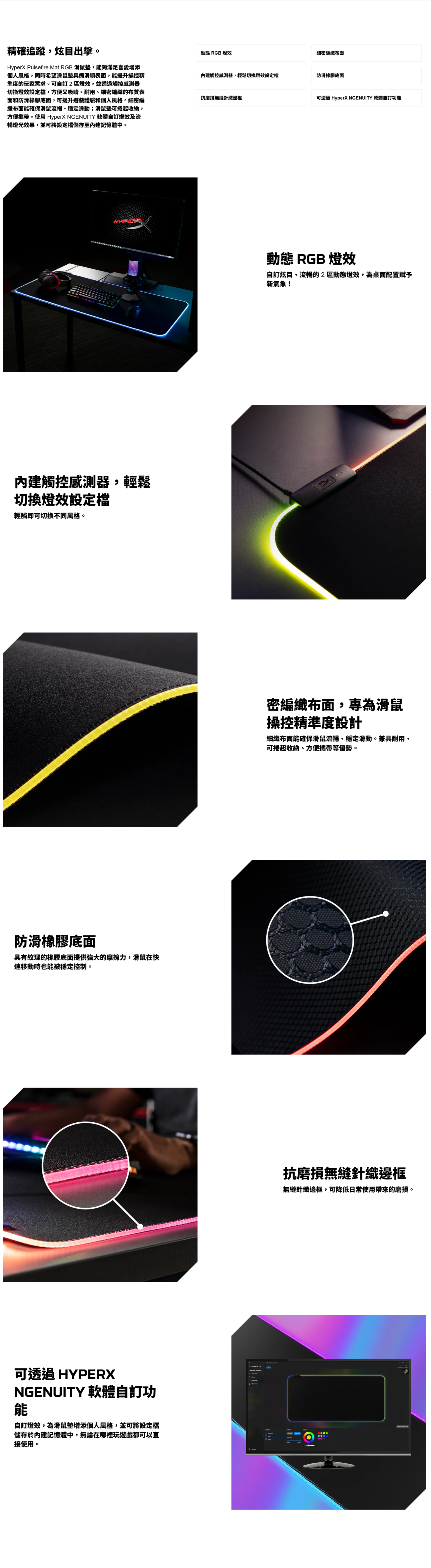 HyperX Pulsefire Mat RGB 滑鼠墊(黑色/布質/針織邊框/RGB)