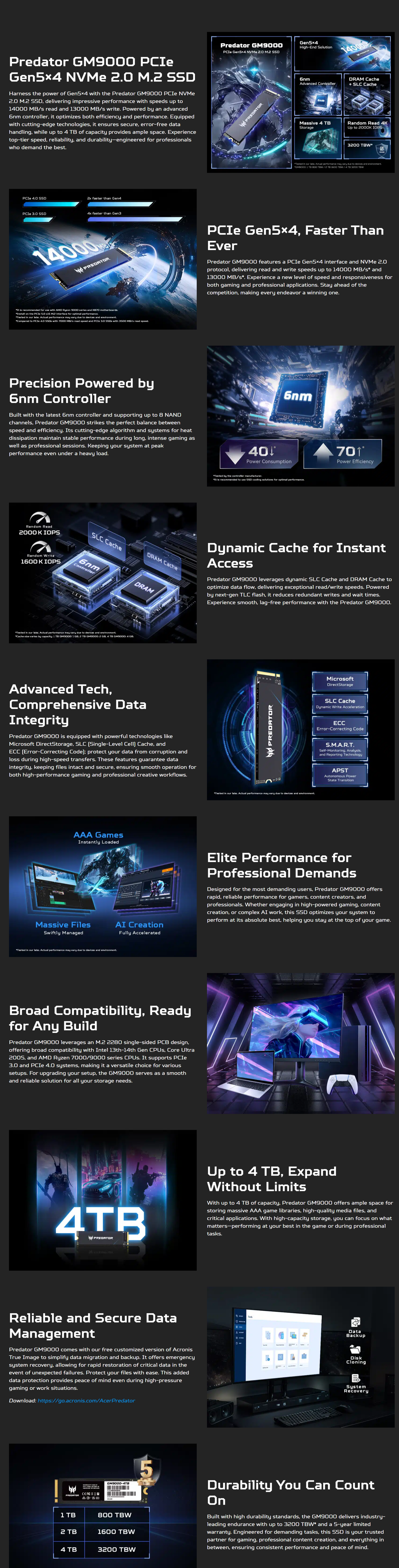 宏碁 acer Predator GM9000 2TB/M.2 PCIe Gen5/讀:14000M/寫:13000M/TLC/五年保