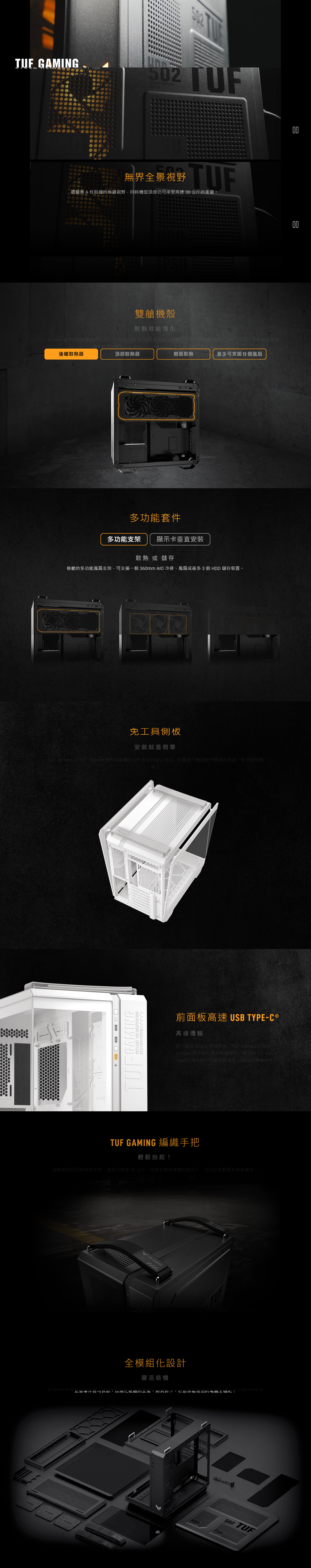 【風扇優惠組】華碩 TUF Gaming GT502 Horizon 無界版 黑 全景玻璃機殼+華碩 TUF Gaming TR120 黑 ARGB 反向風扇 三入組