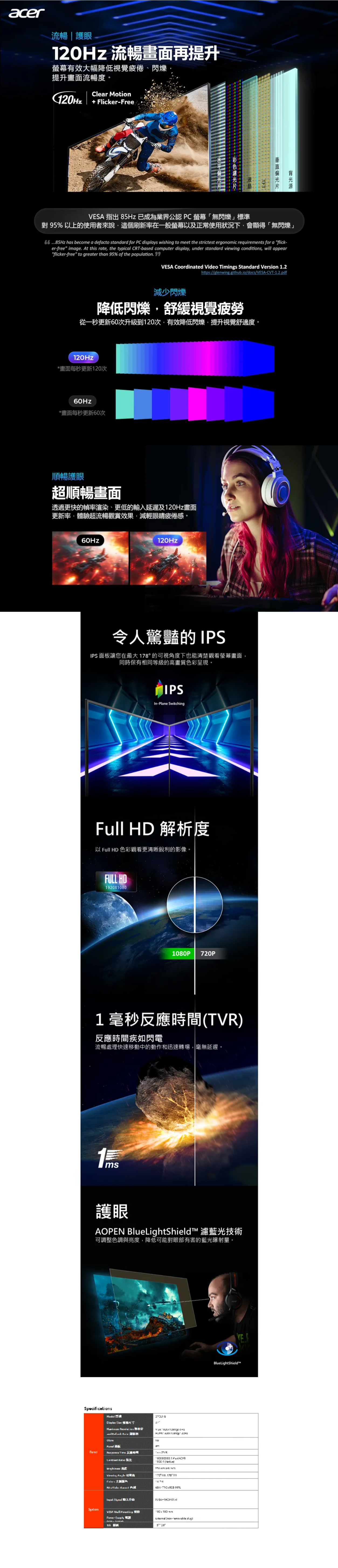 降低閃爍,舒緩視覺疲勞 / Full HD 解析度