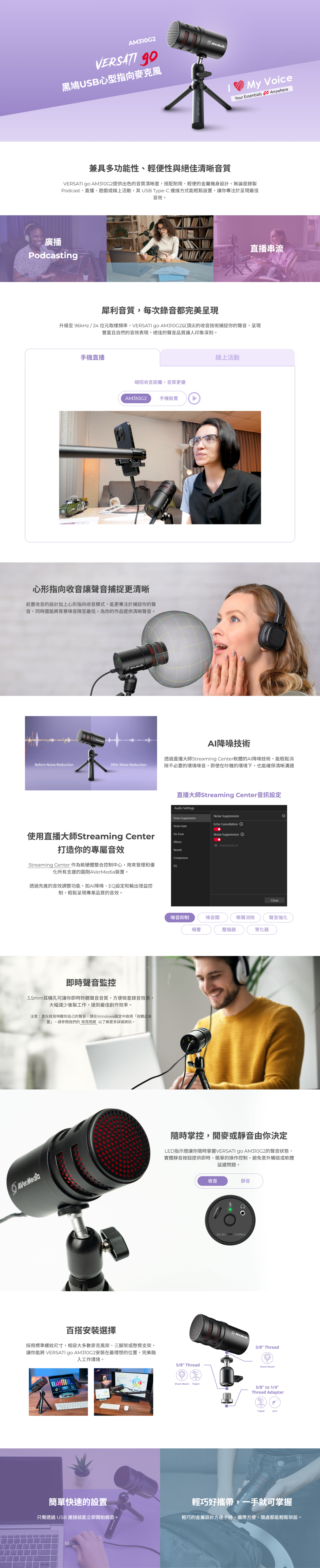圓剛AVerMedia AM310G2 黑鳩USB心型指向麥克風 40AAAM310AWL