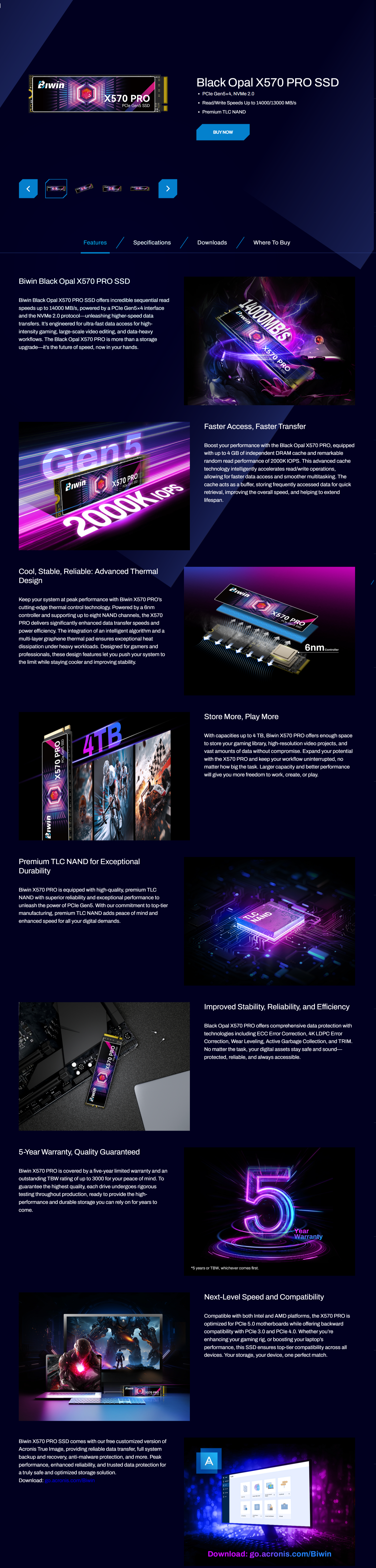 佰維 Biwin X570 PRO 1TB/M.2 PCIe Gen5/讀:14000M/寫:10500M/TLC/SMI新一代6nm主控(讀寫滿血不燙手)