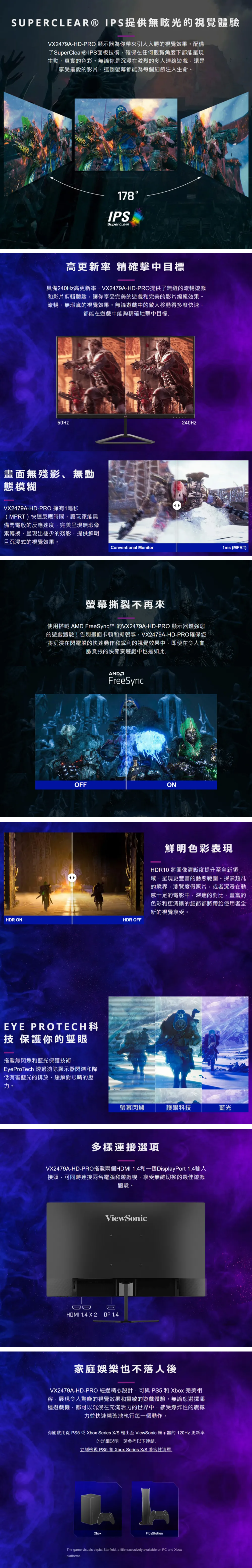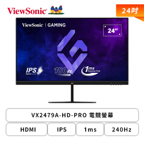 【24型】Viewsonic 優派 VX2479A-HD-PRO 電競螢幕 (DP/HDMI/IPS/1ms/240Hz/FreeSync/HDR10/無喇叭/一年無亮點/三年保固)