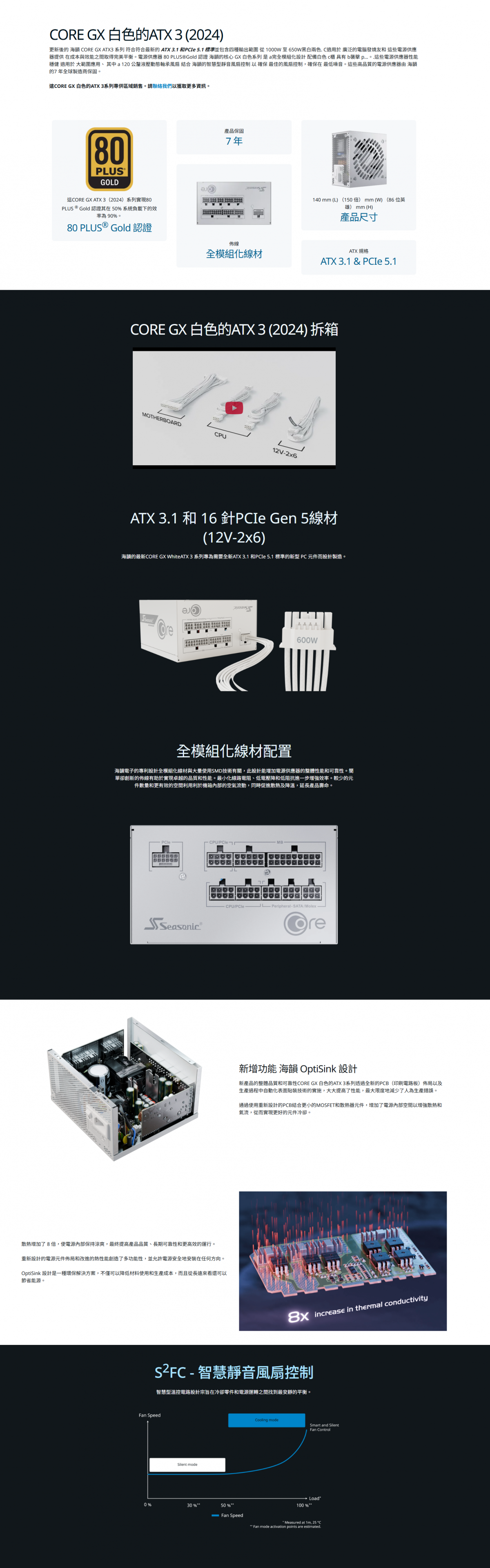 海韻 CORE GX-650 ATX3 白 (80+金牌/ATX3.1/PCIe 5.1/智慧靜音風扇/全模組/十年保固)