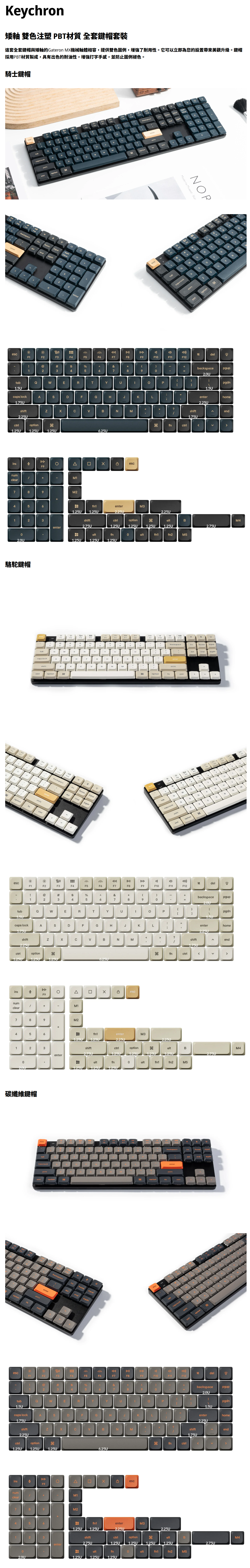 keychron 矮軸 LSA高度 雙色注塑 PBT材質 碳纖維鍵帽