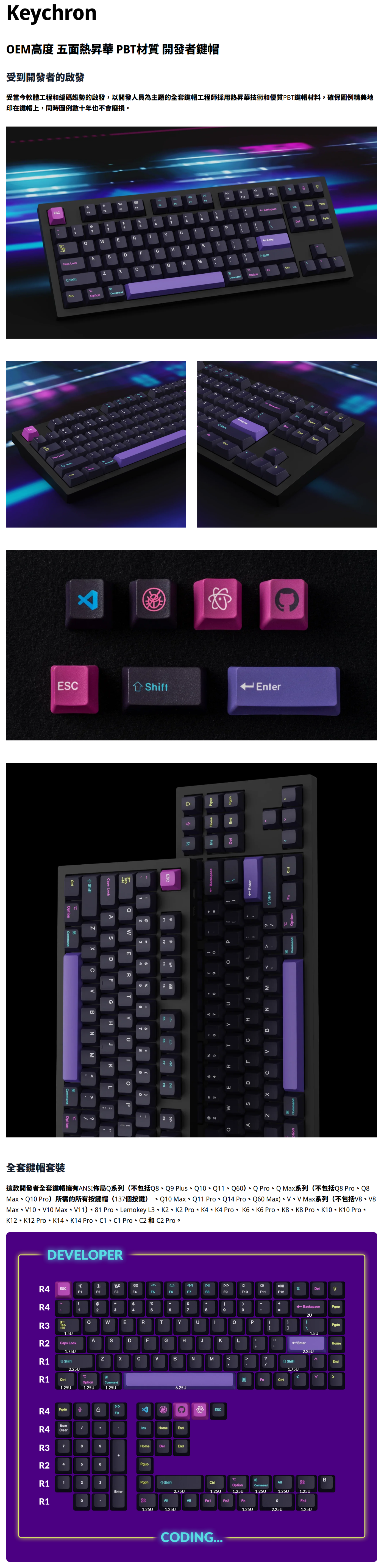 keychron OEM高度 五面熱昇華 PBT材質 開發者鍵帽