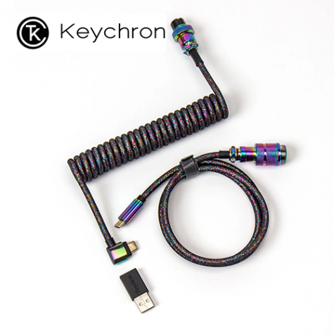 Keychron 高級飛行員螺旋航插線 鍵盤傳輸線 幻彩黑 (彎頭)